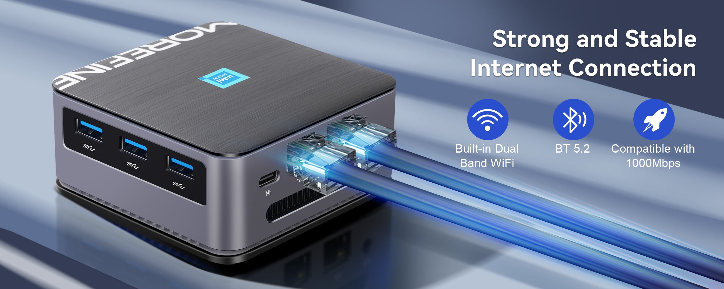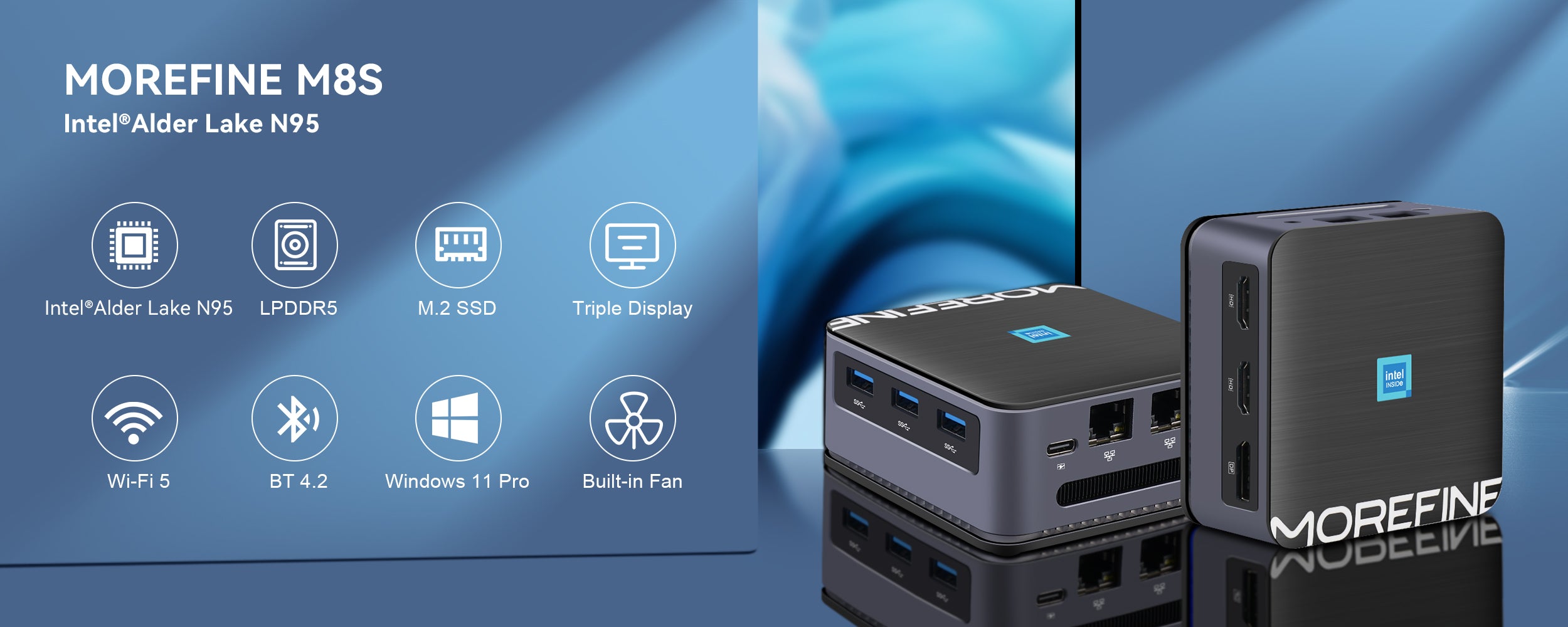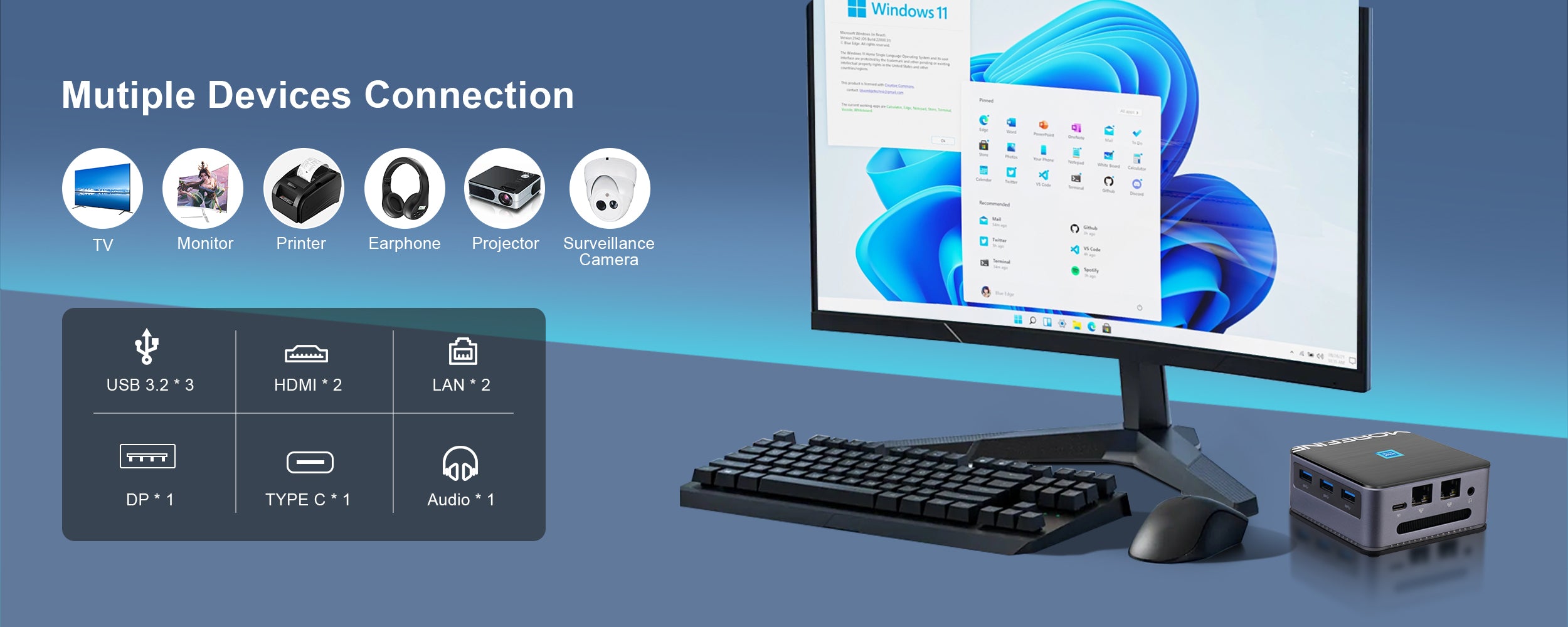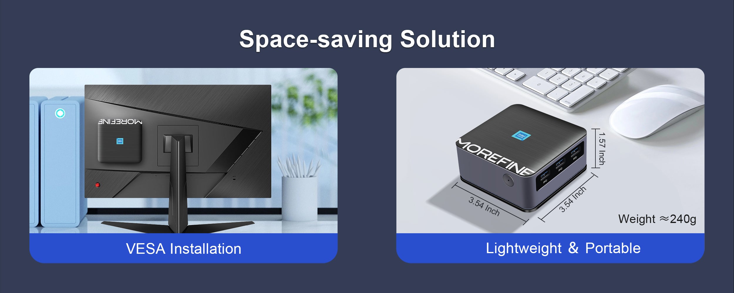 Small and high-tech appearance. When in use, the external blue light will be on. Because of the convenient design, I can directly hang it on the back of the computer monitor. After using it for a few days, the high-definition picture of the operating system of Windows 11 is clean and stable. The built-in memory capacity Enough for my daily office use. It can also be taken to the company or at home because it is only palm-sized and light. The overall configuration fully meets the price