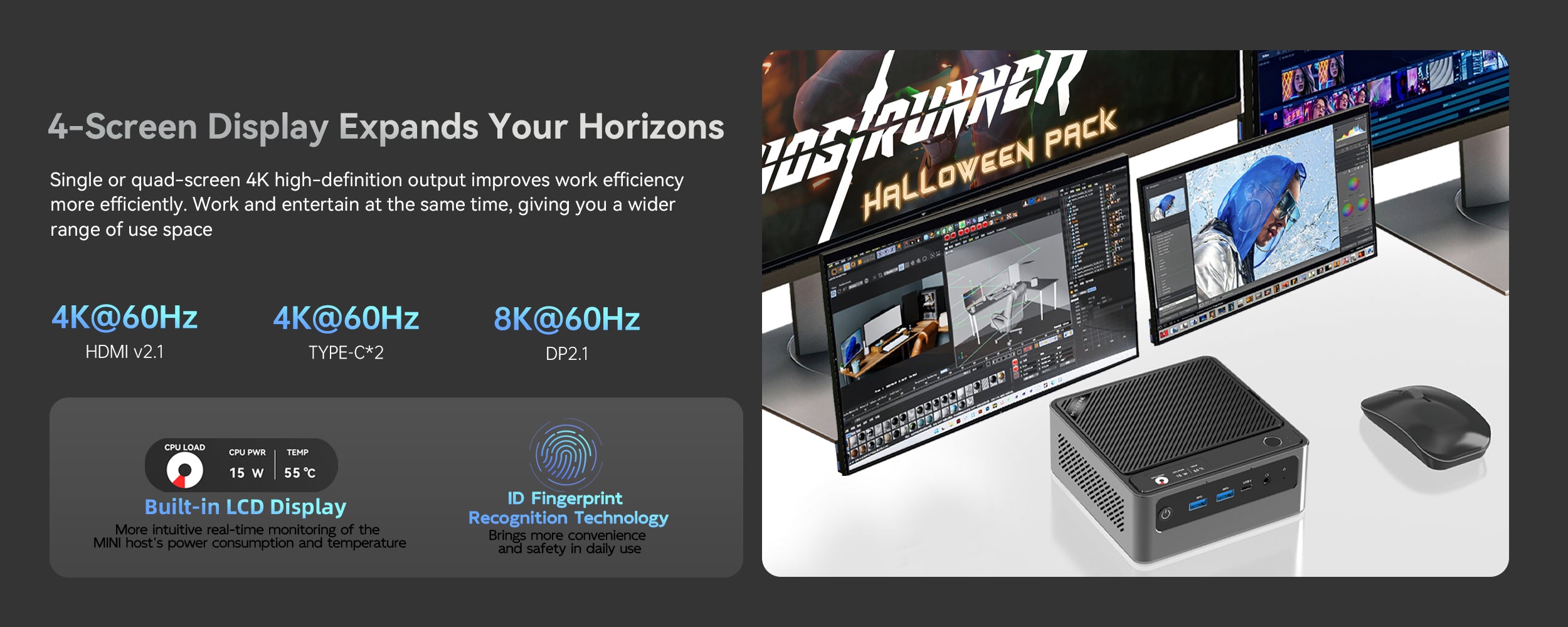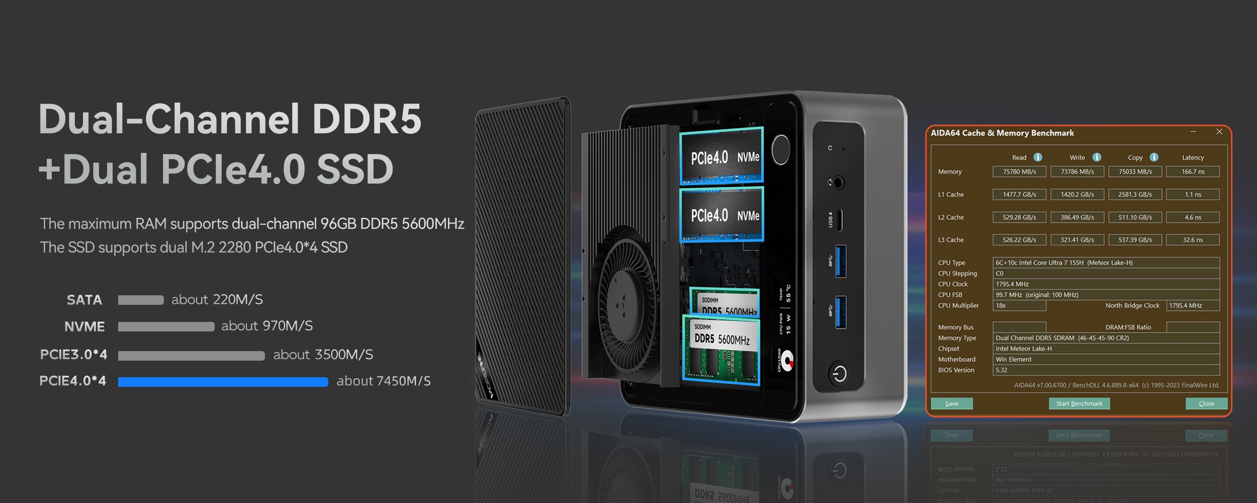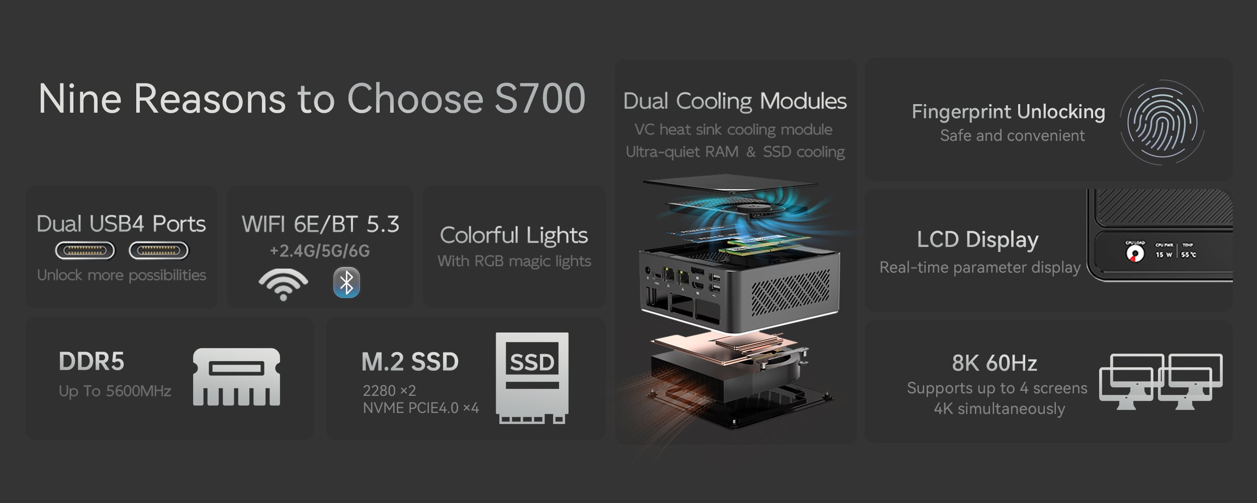 S700 Intel Ultra 7 155H Mini PC with Fingerprint Unlocking and Colorful RGB Light