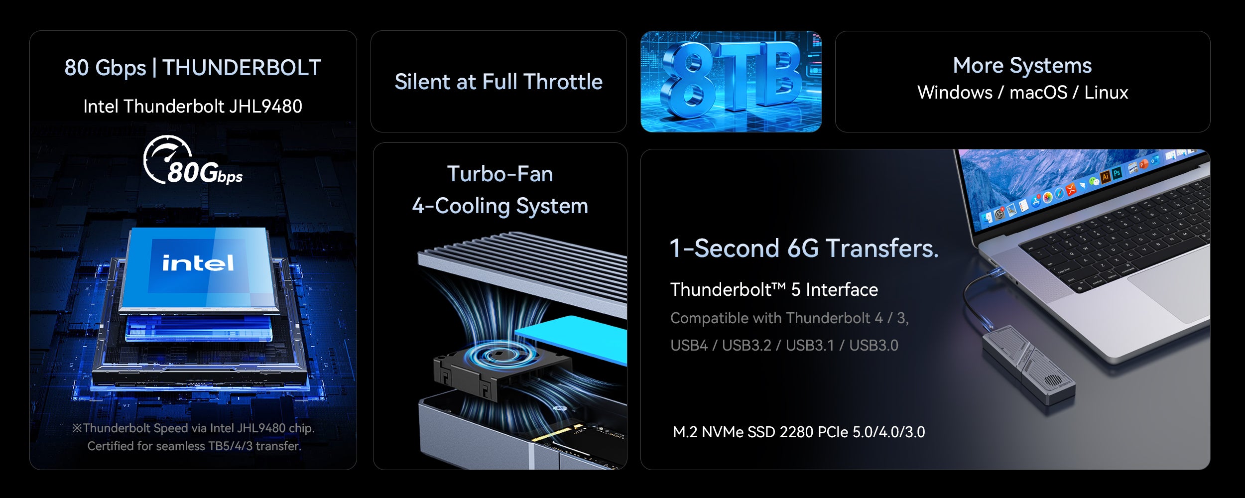 80Gbps Ultra Transfer Speed, 2X faster of Thunderbolt4